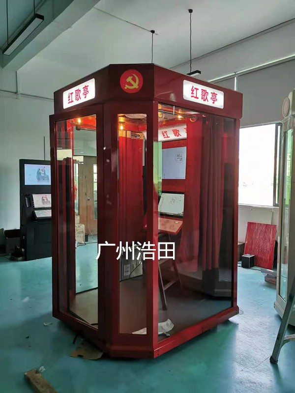 共享自助唱歌機,軍營戰友娛樂唱吧亭,練歌房迷你KTV廠家定制。軍營唱吧圍繞部隊思想、政治教育展開,將思想性、娛樂性、藝術性融為一體,把娛樂向教育滲透,展現了軍隊文化器材的獨特魅力。