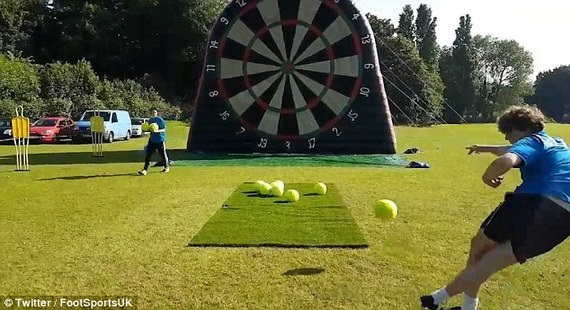 將足球踢向巨型號的飛鏢靶