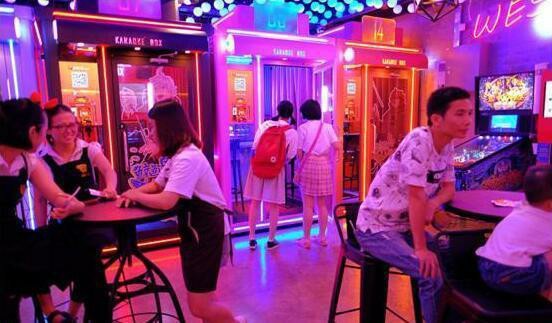 全民K歌在杭州開了第四家店自助K歌店。它由7間迷你KTV房、休閑娛樂區和休息區組成,占地約500平方米。其中,休閑娛樂區設有彈珠機、自助販售機、自助橙汁機等,頗為契合“自助”、“無人值守”的概念。看上去,這和傳統KTV、迷你KTV都不太一樣。