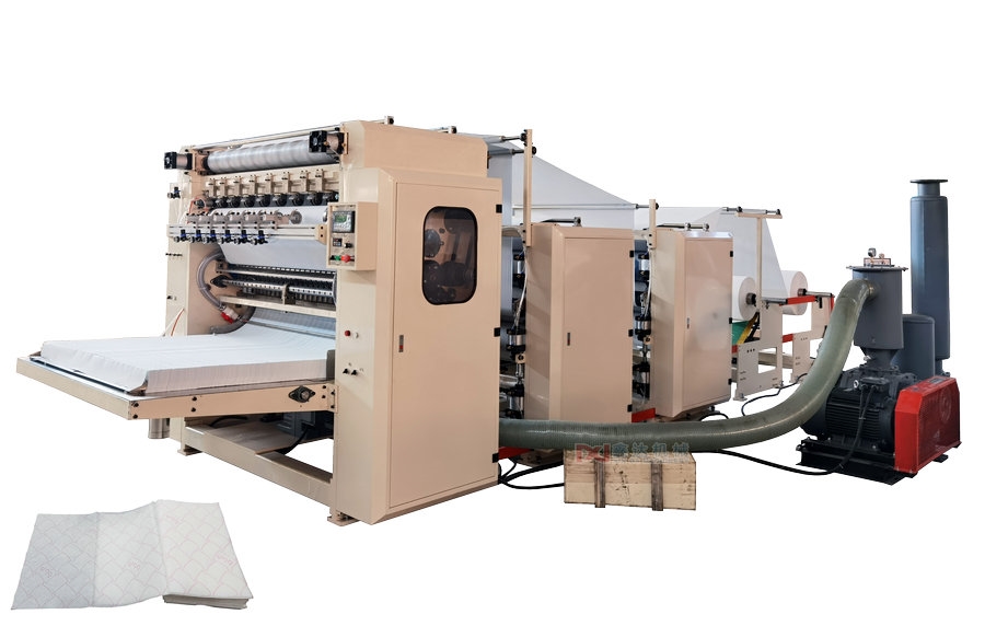 將分切好的擦手紙(原紙)經(jīng)上膠或者色膠壓花復(fù)合切斷,交互折疊成“ V”型,使用時(shí)一張扣一張連續(xù)抽出,產(chǎn)品廣泛用于酒店、辦公室及廚房等供擦手用,方便衛(wèi)生。該采用獨(dú)創(chuàng)全真空吸附新技術(shù),原紙適應(yīng)性強(qiáng),折疊、分切、計(jì)數(shù)多道工序?yàn)橐惑w,具有速度高,出紙整齊等特點(diǎn)。