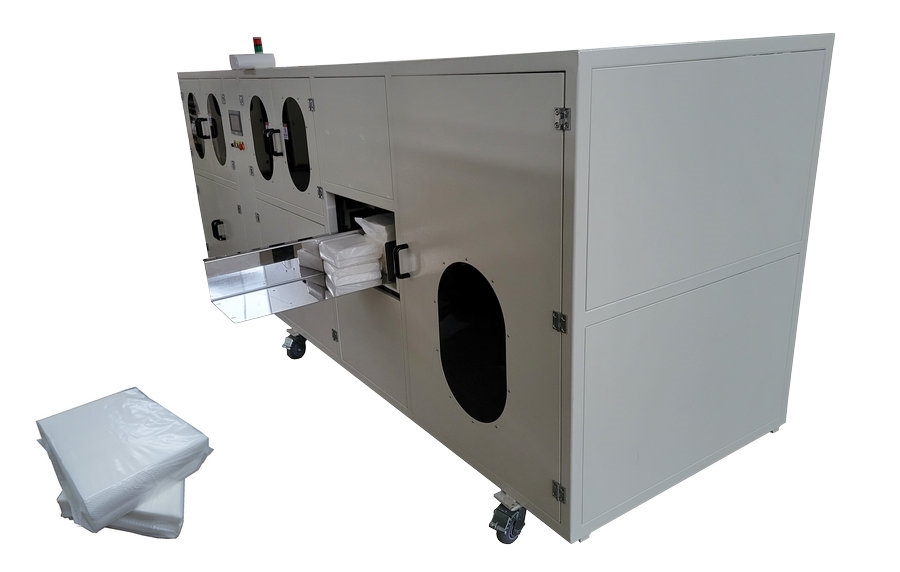 本機采用塑料袋薄膜包裝N、V或M型折疊手巾紙。